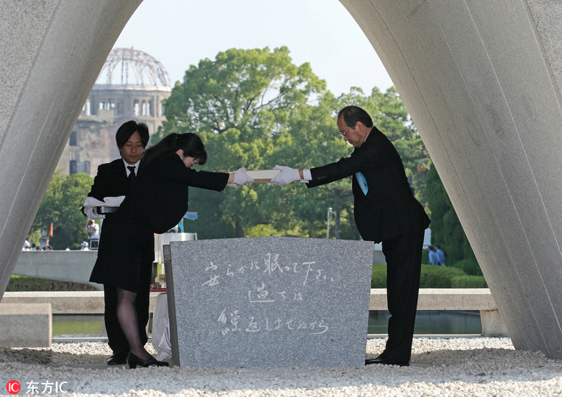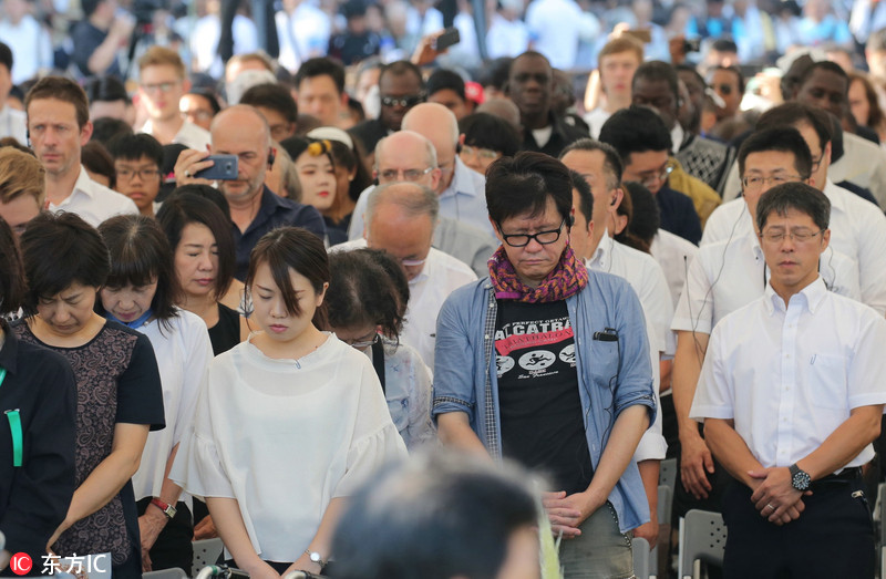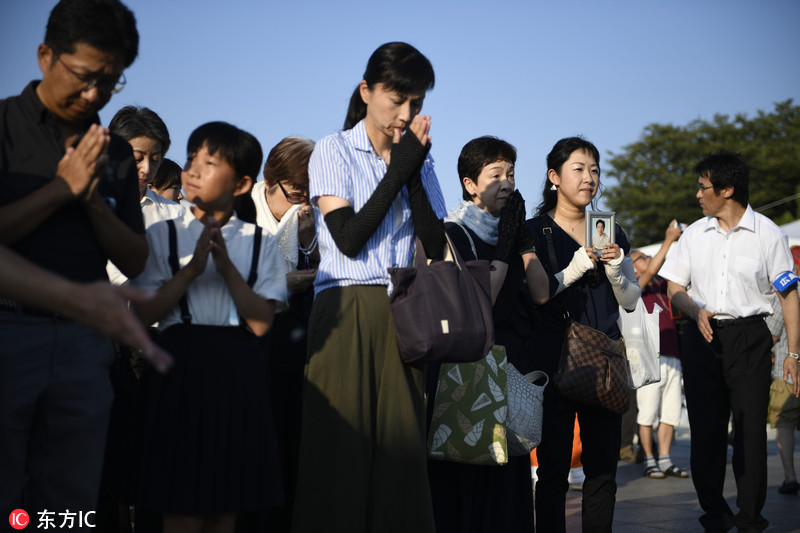 广岛举行和平纪念仪式:呼吁日本为无核世界发 2022-01-15 19:02:34 二级栏目 428 次浏览 当地时间2017年8月6日,日本广岛,日本民众在广岛和平纪念公园,参加广岛原子弹事件73周年纪念活动,悼念遇难者。据悉,1945年8月6日美国在日本广岛投掷原子弹,造成大量平民和军人伤亡。